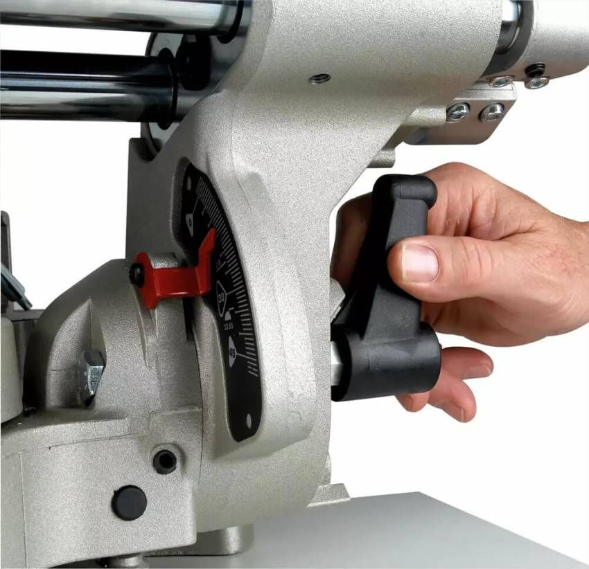 Пила торцювальна універсальна DeWALT, 1500 Вт, диск 305х30мм, 3000 об/хв., кут нахилу 45 гр., Кут повороту (вправо/ліворуч) 60/50 гр., пропил 90/90 гр. (ширина/висота) 220х90мм, макс. переріз заготовки 45/45 гр. 155/50мм, глибина різу (при розпилюванні